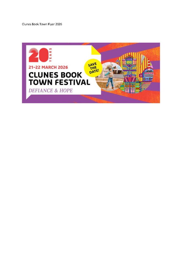 Clunes Book Town Festival 2024 – March 23rd – 24th. – 9am to 5 pm